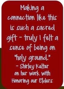 These are only two of many, many stories I could share with you! I hope you’ll consider being part of Honoring Our Elders, helping me grow this important ministry. In the near future we will begin developing a network of volunteers, Friends of Elders - individuals, families, youth - who will share in the joy of story-catching! Stay tuned for more details.